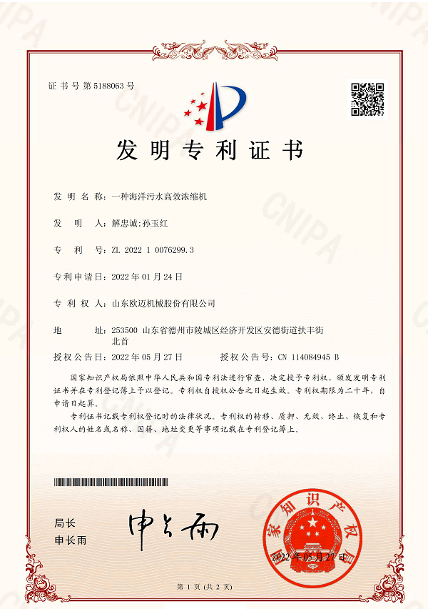 一种海洋污水高效浓缩机-发明专利证